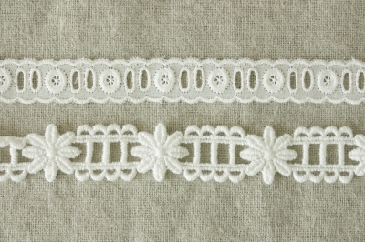 リボン通し柄(上:綿レース、下:ケミカル)