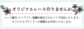 「オリジナルレース」小ロット生産のお見積もりお問い合わせが増えてきております。