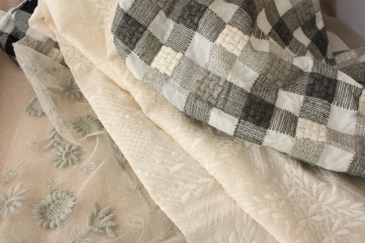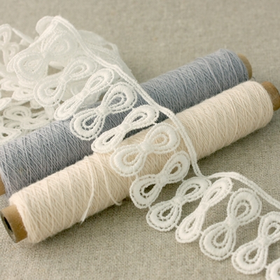 エンブロイダリーといえば、ケミカルレース、チュールレース、綿レースなど細巾からアップリケまで。